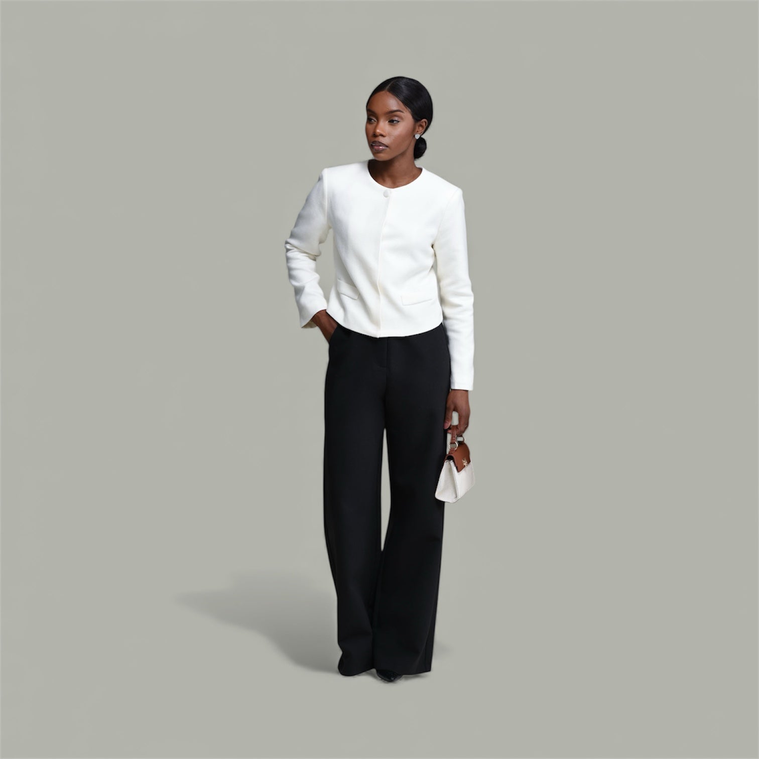 Tailored with a clean, sculpted shape, the Clarity — Ivory Jacket brings structure without harshness. The lines are precise, the fit is intentional, and the feeling is unmistakably refined.